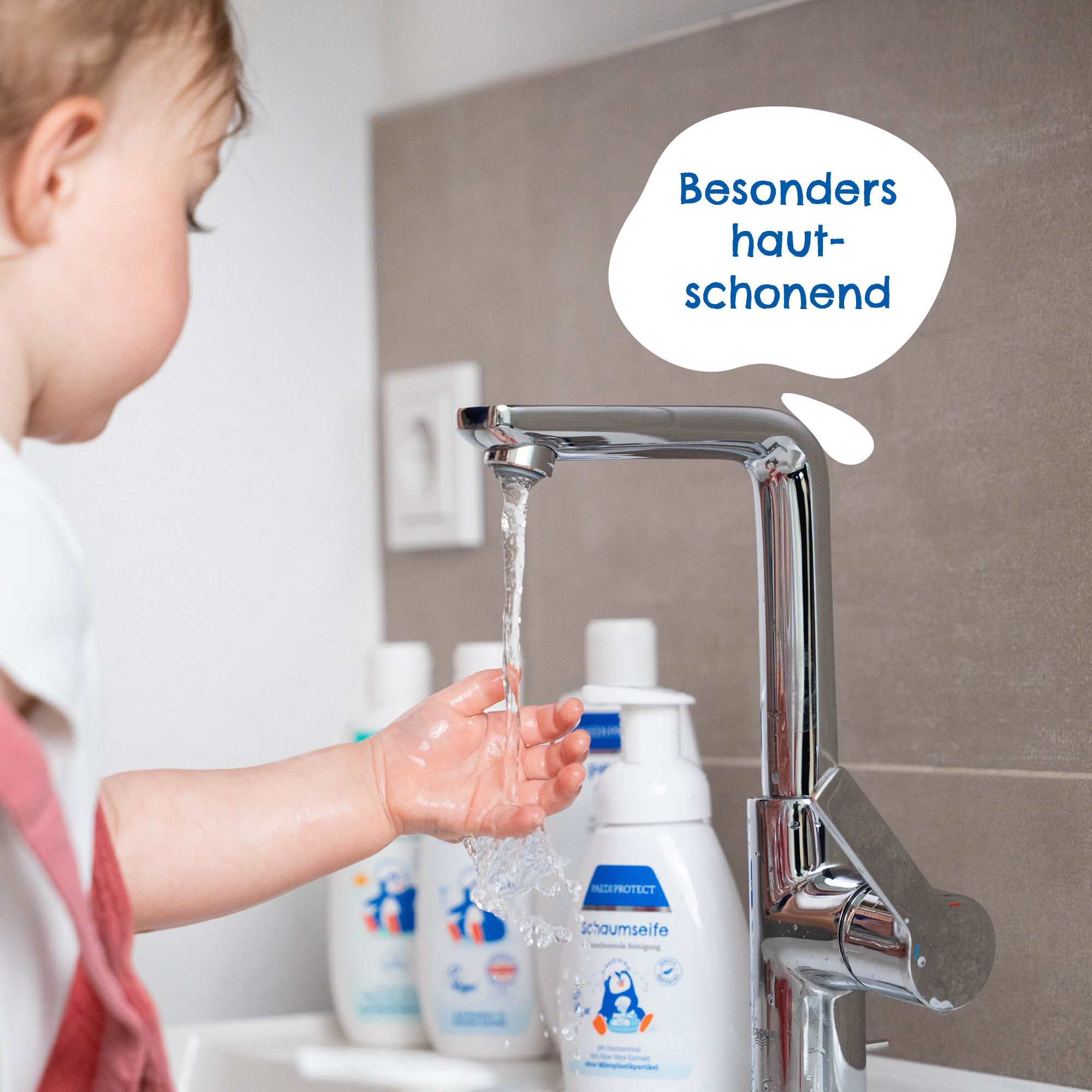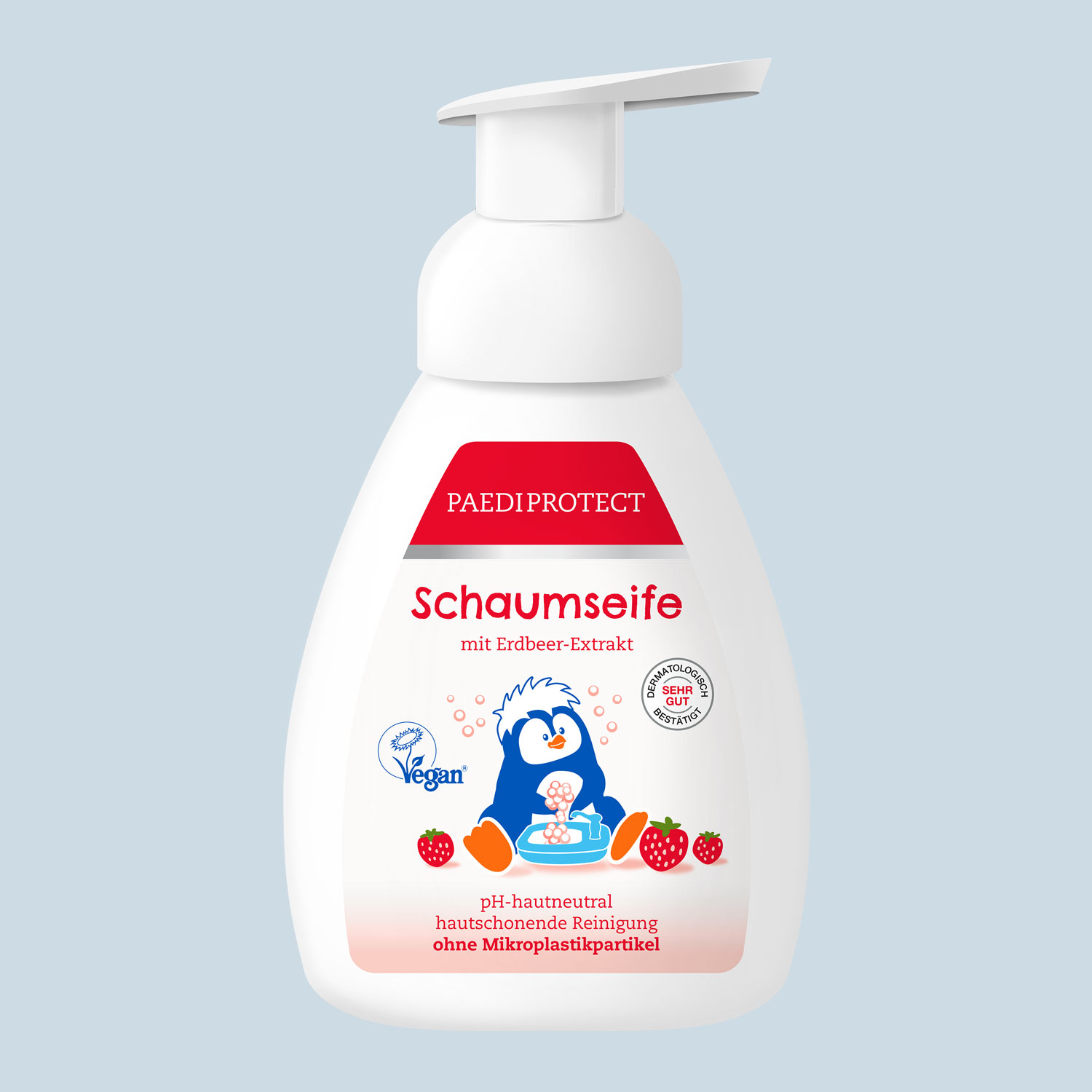 Die PAEDIPROTECT Schaumseife mit Erdbeer-Extrakt reinigt die Hände besonders schonend und hygienisch, ohne den Säureschutzmantel der Haut anzugreifen. Die ph-neutrale Seife enthält pflanzliche Waschsubstanzen und pflegt die Haut mit Aloe Vera und Glycerin. Die beiden Inhaltsstoffe sind dafür bekannt Feuchtigkeit besonders gut in der Haut zu binden. Die sanfte Formulierung schäumt zart auf und hilft der Haut dabei ihre natürliche Schutzfunktion zu bewahren. Ideal für Kinder und Erwachsene mit sensibler, trockener oder zu Neurodermitis neigender Haut.